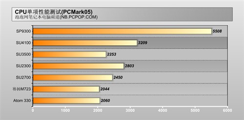 通过PCMark05的评估我们发觉,酷睿2双核SP9300处置器机能表示超卓,远超飞跃双核、赛扬双核以及Atom双核处置器,虽然我们目前没能拿到搭载酷睿2双核ULV处置器的产物,但相信规格更高的SP9300机能更强。