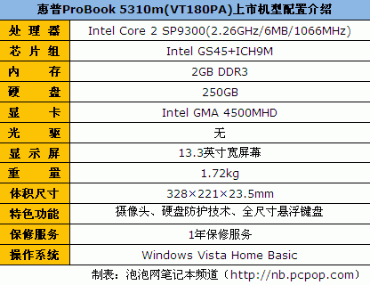 惠普ProBook 5310m(VT180PA) 是惠普公司面向商务市场推出的一款13。3英寸屏幕的商用笔记本电脑,其最大长处正在于采用了轻薄机身设想,仅为1。7公斤摆布的分量,无疑使其具有很是不错的便携性。从外不雅来看,黑色机身和悬浮式键盘的设想无疑使5310m看起来就像是4416s系列的缩小版。该机型采用13。3英寸16!9黄金比例宽屏幕设想、配备了Intel Core 2 SP9300双核处置器(2。26GHz从频/6MB二级缓存/1066MHz前端总线GB硬盘和Intel GMA 4500MHD集成显卡。目前,该机型经销商报价为5663元,价钱取前一阵比拟有300多元的降幅。